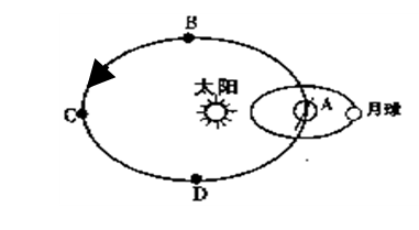 第(1)题,地球公转方向为自西向东,在地球公转轨道上,地球公转的方向如下图所示。