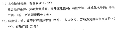 (2)印度吸引澳大利亚钢铁公司建厂的主要区位因素。(6分)