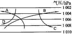 试题分析:风从高压吹向低压,图中DC从低压吹向高压,故DC错;受地转偏向力的影响,北半球向右偏,南半球向左偏,故图中B正确。