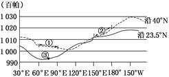 3、单选题 图是某月份海平面平均气压沿两条纬线的变化图。分析回答问题。