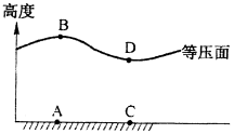 试题解析:根据热力环流的原则“”高高低低“”,判断B点为高压,D点为低压,而对于地面相反,A点为低压(受热,上升运动),C点为高压(遇冷,下沉运动)。大气的水平运动为高压指向低压,排除A、B、D。