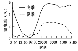 本题解析: 理解题干信息“热岛强度为城区与郊区气温之差,其值高低反映了热岛强度的大小”,结合图示信息判断:热岛强度冬季大于夏季;午后小于夜晚;冬、夏季的差异在午后最小,日出前后最大。