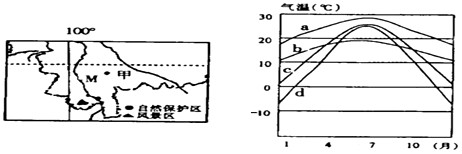 1、在上图a、b、c、d四条气温曲线中,能正确反映甲地气温年变化的是