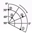 4、单选题 如图是一幅经纬网地图。读图,图中①地位于④地的( )