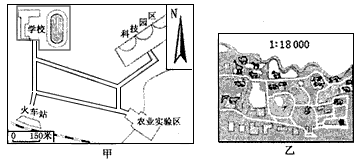 ? B、甲为地图,乙为景观图