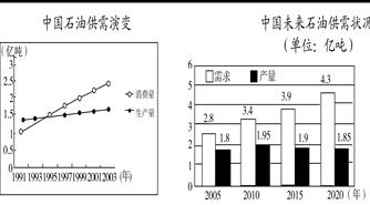 (2)1993(2分);大(2分);随经济快速发展,我国对石油消费需求增长加快,供需矛盾加大,且受石油资源条件限制,增产困难(4分)