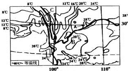 (1)此时表示___(1月或7月),A地气压中心的名称为____,其成因是______________。