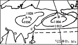 4、综合题 读北半球部分地区海平面等压线分布图,回答下列问题。