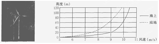 小题2:上右图为“陆地与海上风速剖面比较图”,据图判断,为了有效利用风能发电,应使安装发电装置的风塔高度 (?)