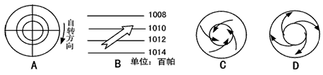 2、在上图中D图所示的天气系统影响下,下列现象可能出现的是
