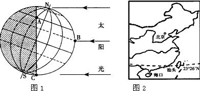 (1)该日,图2中三城市正午太阳高度由大到小排序是____>_____>_____。(3分)