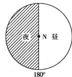 1、单选题 图中与新的一天范围较吻合的是 ( )