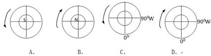 4、单选题 所给四幅图中,能正确表示地球自转方向的是( )