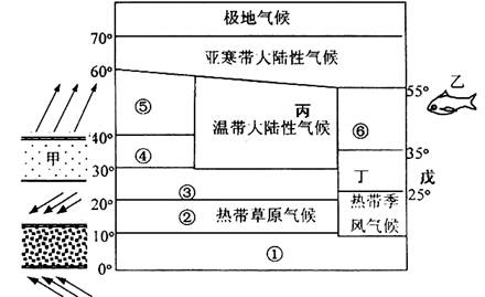 (3)气候类型④所在地区植被类型是?,由气候①→②→③→④→⑤变化所产生的自然带变化反映了?的地域分异规律。