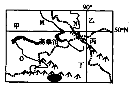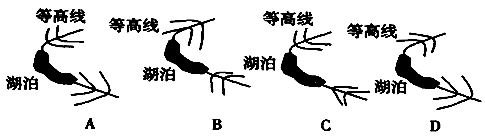 【小题3】下列四图中能正确表示流经M河上游斋桑泊的河流及等高线的为 ( )