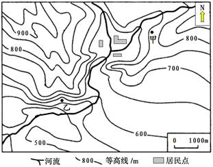 (1)对比甲、乙两地,指出泥石流灾害发生概率较大的地点,并说明理由。(6分)