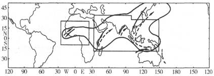 【小题1】图中现象主要分布在东亚、东南亚和南亚地区,且箭头方向随季节变化而呈现相反的现象,表示的地理事物最有可能的是季风。