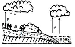(1)在图中①②两处标出箭头,表示水汽运动方向。