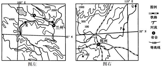 (2)比较MN河段(图左)与PQ河段(图右)水文特征的差异。(4分)