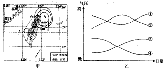 2、若A天气系统向西移动经过福州,图乙中四条曲线最能反映福州气压变化过程的是