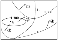 小题2:假设图中曲线为等高线,L为河流,且图中等高距为100 m,由图中a和b的数值可能是? ( )