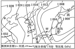 D.甲、乙海岸的气候类型深受下垫面状况的影响