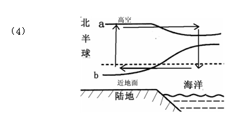 (3)仅考虑热力因素,在图中用“→”画出海陆间热力环流。(2分)
