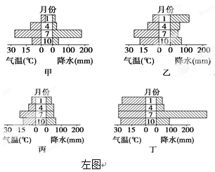 【小题2】图乙所示①②气候类型与图甲中甲、乙、丙、丁四地气候类型相符的有( )