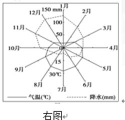 1、单选题 读“气候要素材料图”(如左图和右图所示),回答下列各题。