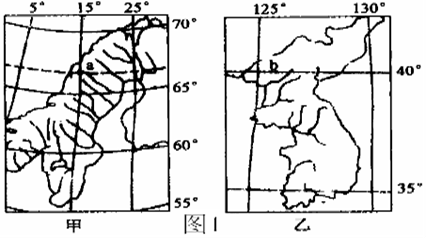 本题解析:甲是欧洲西部,乙是朝鲜半岛。不是同一个大洲;甲图所示地区位于乙图所示地区的西北;乙图比例尺大,表示范围小;甲位于大洋西岸,乙位于太平洋。