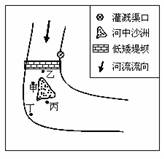 小题2:根据题干材料分析,人工堤坝并不是很高,水量大时河水可以漫过人工堤坝,其主要作用应该是抬高枯水期堤坝上游水位并蓄水,便于引水灌溉。故选B。