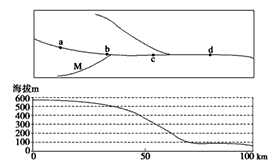 1、单选题 下图为“某流域河流分布图及其干流河床对应的剖面图”。读图回答1—2题。