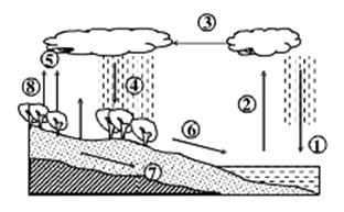 3、综合题 读“水循环”示意图,完成下面问题。(10分)