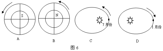 小题1:图6中能够正确表示地球自转或公转方向的是