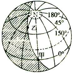 (4)此时与甲点属于同一天的地区占全球的范围( )