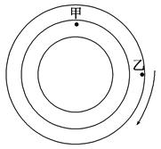 如果该图是从极地上空俯视地球,则甲点位于乙点的 ( )