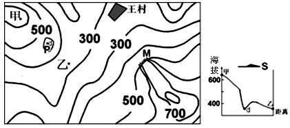 5、单选题 下左图为某地等高线地形图,右图为此图甲、乙两点间地形剖面示意图,据此回答下列各题。