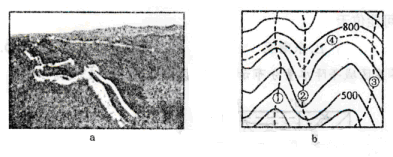 2、单选题 “因地形,用险制塞”是修筑长城的一条重要原则。图a是某段长城的景观照片,图b是北方某区域等高线图(单位:米)。结合相关知识,完成下题。