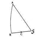 2、单选题 下图中S为南极点,AB为晨昏线的一段,B为晨昏线与某一纬线的切点,这一天B点最大太阳高度为40°,B、C在同一经线上,且C在SB的中点上。读图回答1—3题。