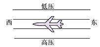4、单选题 下图所示,一架飞机在北半球自东向西飞行,飞机左侧是高压,可判断出( )