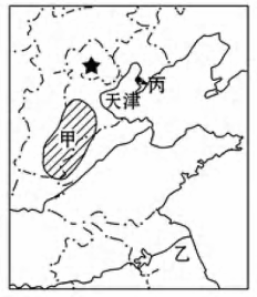 2、单选题 天津滨海新区(图中阴影丙处)作为环渤海经济圈的一个重要组成部分,正在成为中国经济发展的“第三极”。读图回答问题。