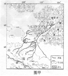 (1)据图甲判断,石羊河总体流向为___________,从内、外流河类型看,该河为___________。判断理由是:______________________________________________________________________________。