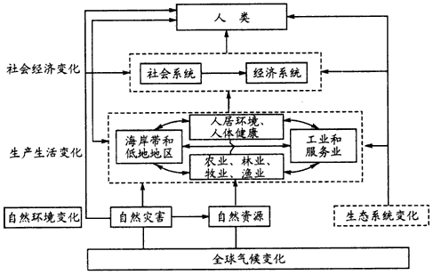 (2)全球水热条件的变化,在许多地方增加了人类开发利用自然资源的难度,加剧了自然灾害(如洪