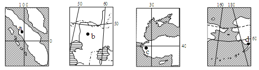 2、单选题 读四个地区的地理位置示意图。回答问题。