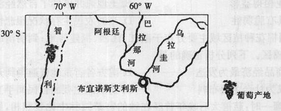 5、单选题 智利以盛产质优价康的葡萄酒而著称于世,其葡萄种植区多分布在安第斯山脉西侧的山谷中。读图,完成下面问题。
