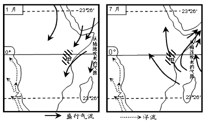(1)甲区域气候一年分干、湿两季,从图中可看出,其主要的影响因素是