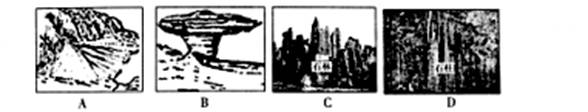 2、单选题 图为一位旅行者拍摄的某地自然景观的一张照片,照片所示地貌的形成原因是