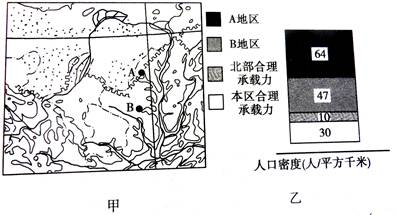 4、单选题 下面甲图为某地区地形图,乙图为该地区人口密度分布情况图读图回答题