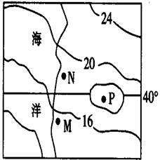 1、单选题  下图所示为一假想地区某月等温线分布。图中P处因受地形影响气温出现异常。读图完成下列各题。