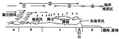 3、单选题 读“我国北方地区主要外力作用示意图”,回答下题。